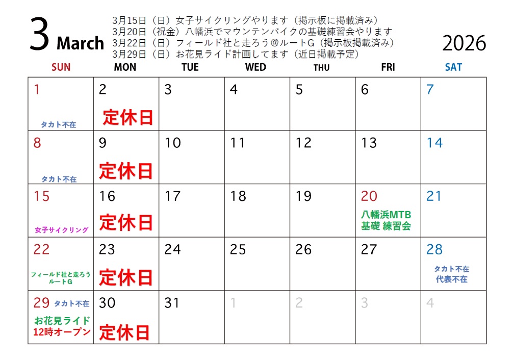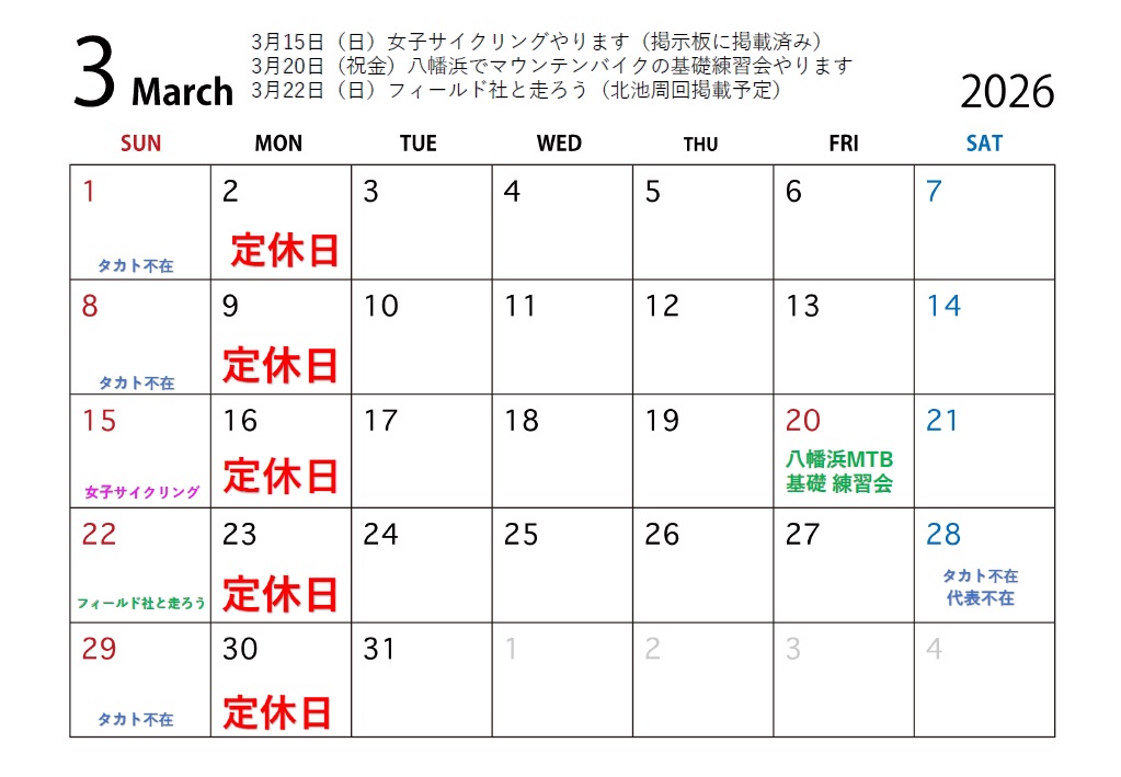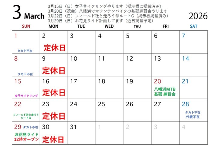 2026年3月の営業案内及びイベント案内をさせていただきます 【四国のイベント】3月8日(日)阿波シクロクロス(申込〆切3月1日で...