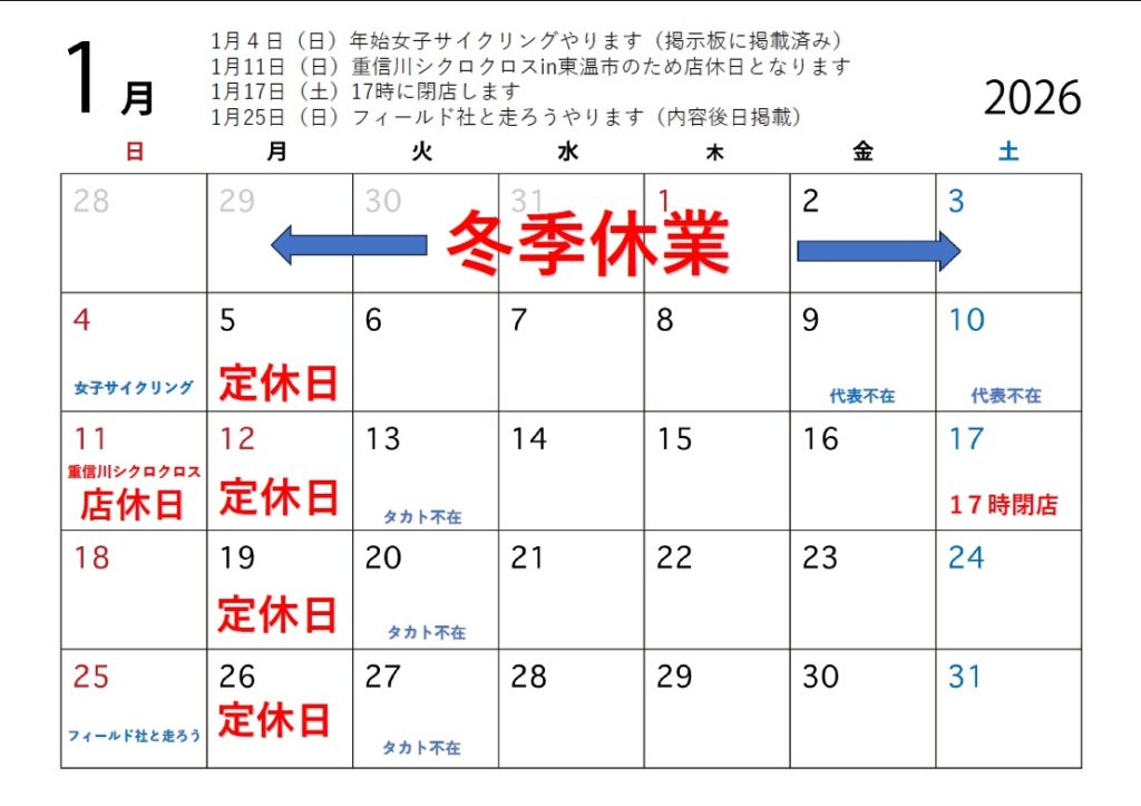 2026年1月の営業案内