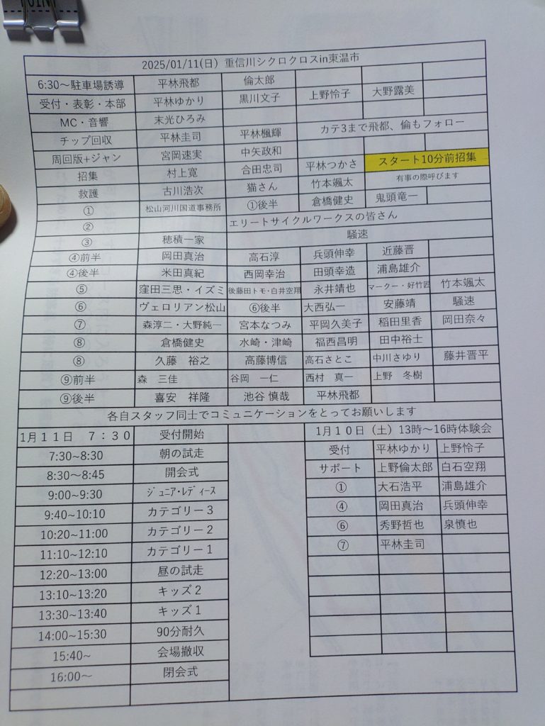 それもこれもボランティーアで手伝ってくれる人、エントリーして走るけどめっちゃ手伝ってくれる人、皆んなのパワーがあってシゲクロは成り立っている。その手伝ってくれる方々を各ポイントに配置したりスケジュール管理をする…これがまた難しいんです。この難題がやっとクリアしたのでだいぶ気が楽になりました