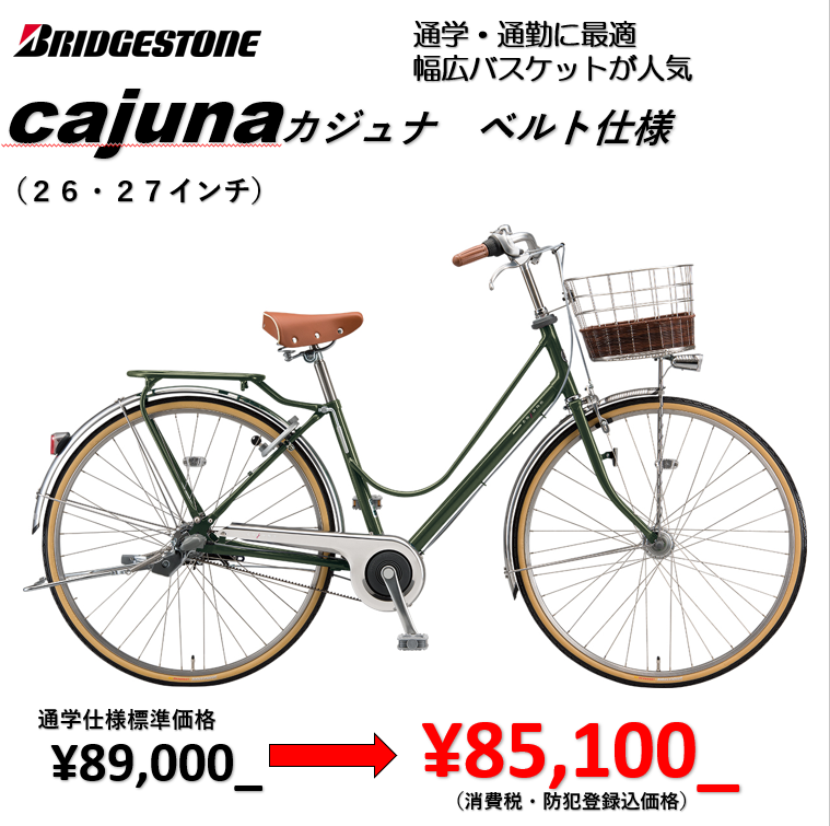 当店は主にスポーツサイクルを展示しておりますので通学自転車を展示するスペースがあまりなく常時展示は数台と少ないですが、安心してください!当店はブリヂストンの正規取扱店ですので、ご希望の車種を取り寄せさせて頂き一台一台丁寧に組立てを行い、ご納品をさせて頂いております。(お客様の体格に合わせてハンドル高なども調整していますし、当店購入車両は定期点検無料です)現在【アルベルト27インチ】、【カジュナ26インチ】の店頭展示車をご用意しています。サイズ感などをご確認いただきながら取り寄せ対応をさせていただければと考えていますので、安心して希望車種をご指定ください。メーカー在庫があれば7~10日ほどご用意可能ですが、この時期は注文が集中し、メーカー在庫は少なくなります(既に売り切れモデルあり)ので、お早めにご検討いただく事をお勧めします。